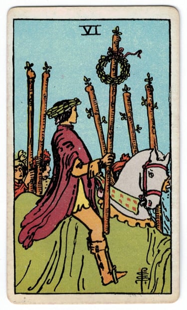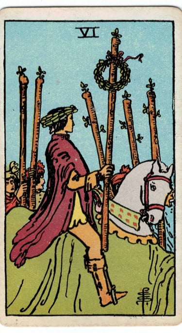 O seis de paus é essencialmente uma carta de encontro e por ser ativa pressupõe movimento, tentativas e coragem para buscar o que quer. Também é associada a vitória, conquista, reconhecimento público e êxito após a luta.
