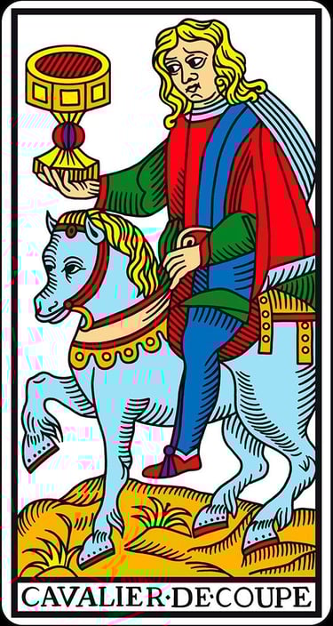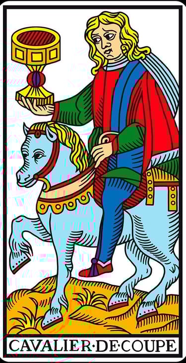 Os Cavaleiros são aqueles que comunicam. No naipe de copas a comunicação é sobre amor, emoção, paixão e afetos.