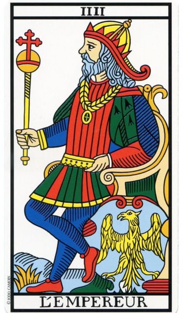 Nos diz sobre autoridade, figuras paternas, leis, locais fixo e homens de poder. Assim como são quatro pernas que mantém uma mesa estável, essa característica também permeia a estrutura desse arcano maior. O Imperador e seu império só cede por uma grande revolução. Porque ele representa aquilo que é estabelecido, fortalecido e estruturado por um longo período.