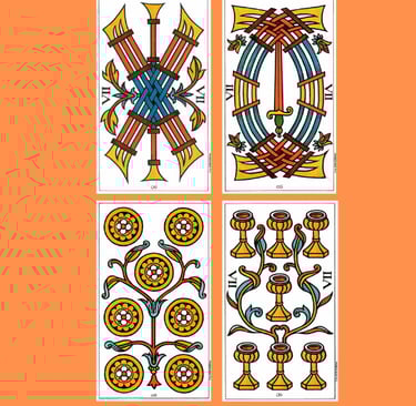 Sete taças organizadas de forma que uma parece coroar as outras. É o equilíbrio emocional que atinge um nível superior de consciência.